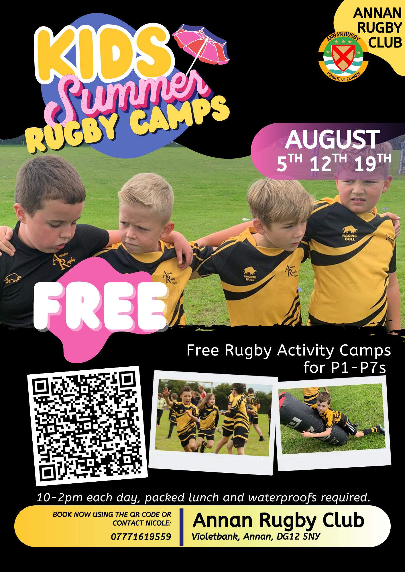 We are hosting FREE Rugby Camps for P1-P7s on Tuesday 5th, 12th and 19th of August