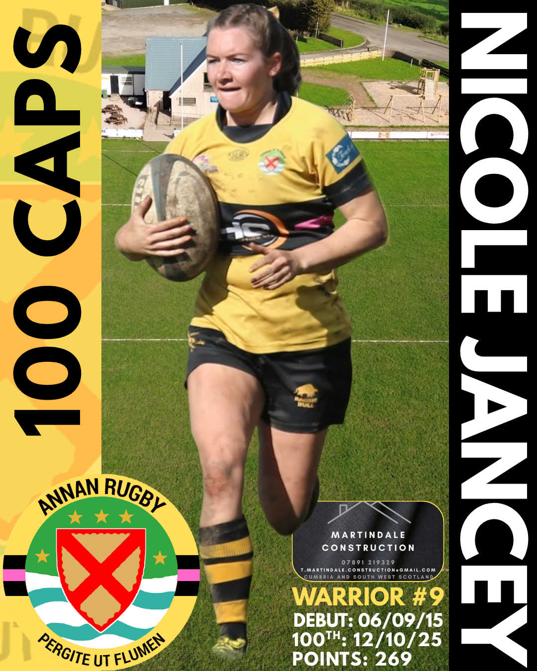 Congratulations to Nicole who on Sunday will take to the rugby pitches for the 100th time for the Warriors in a competitive match (league and cup).