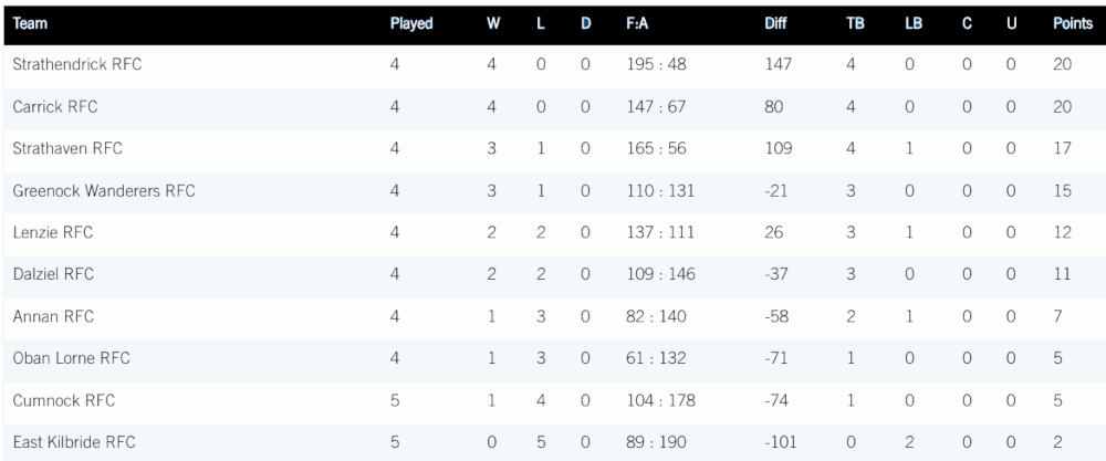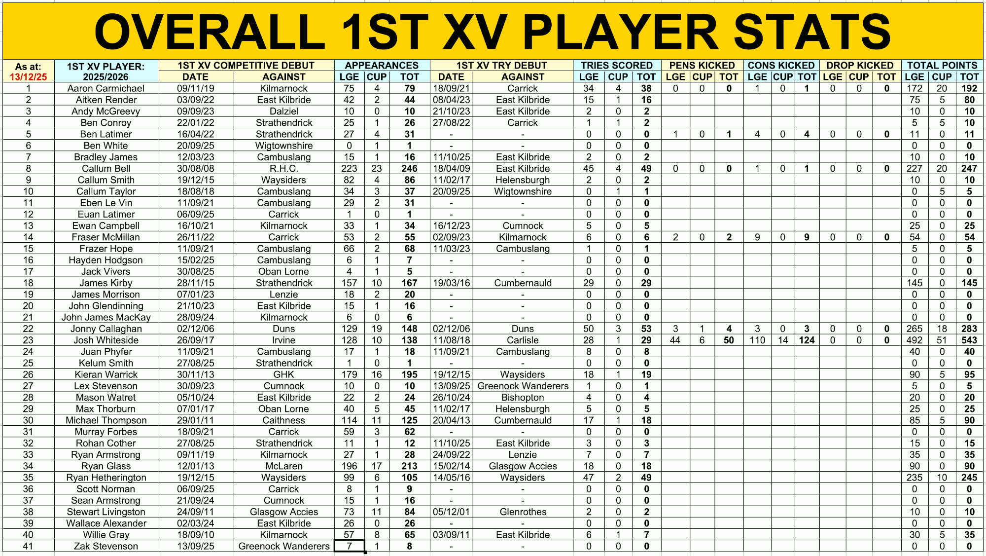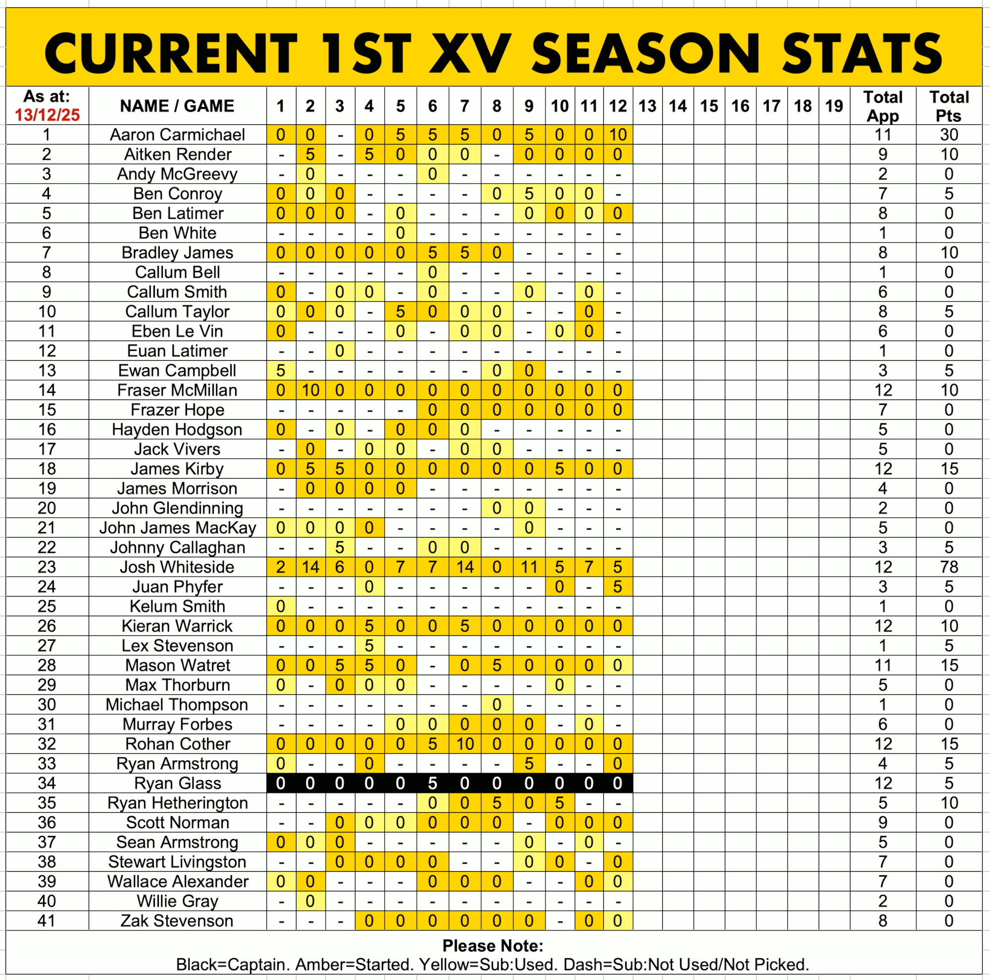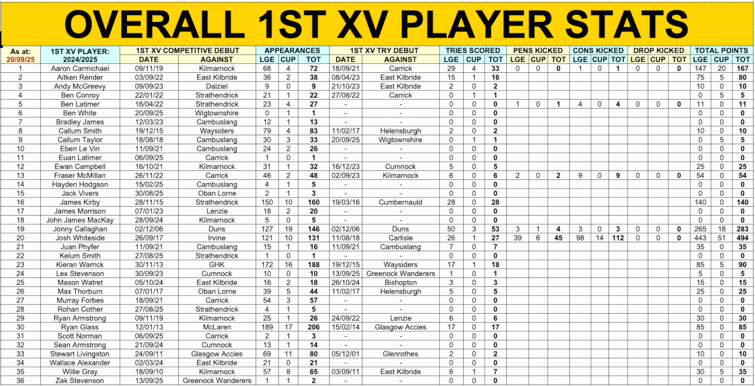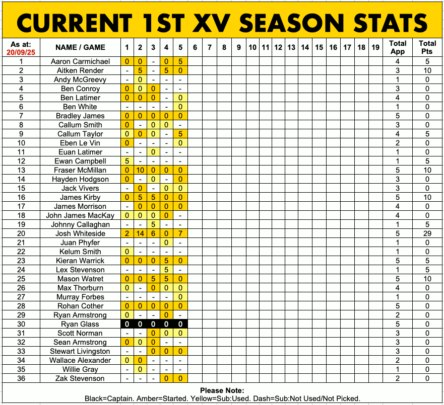 CURRENT 1ST XV STATS