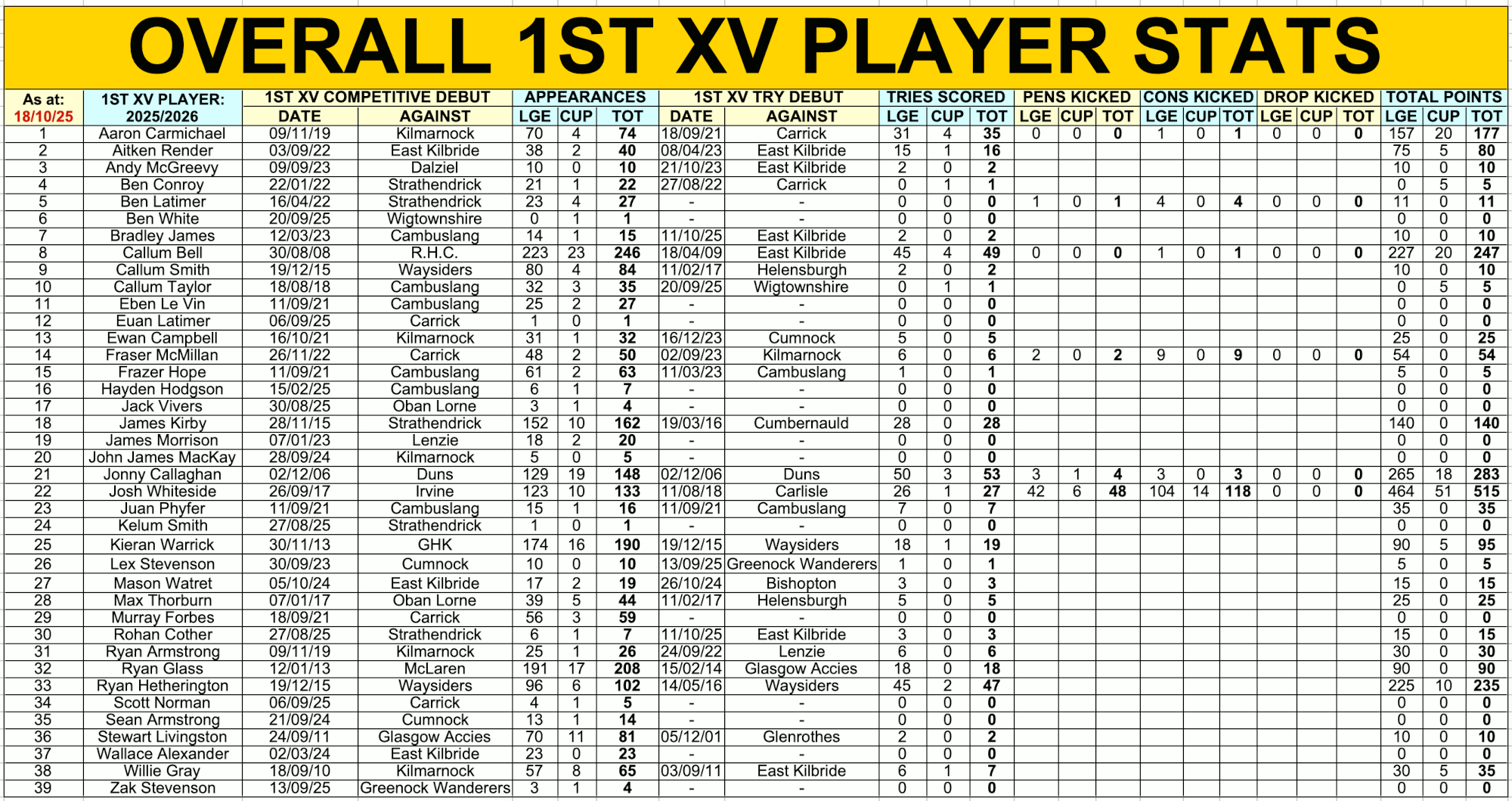 FOR PLAYERS WHO HAVE PLAYED A MATCH IN THE 2025/26 SEASON