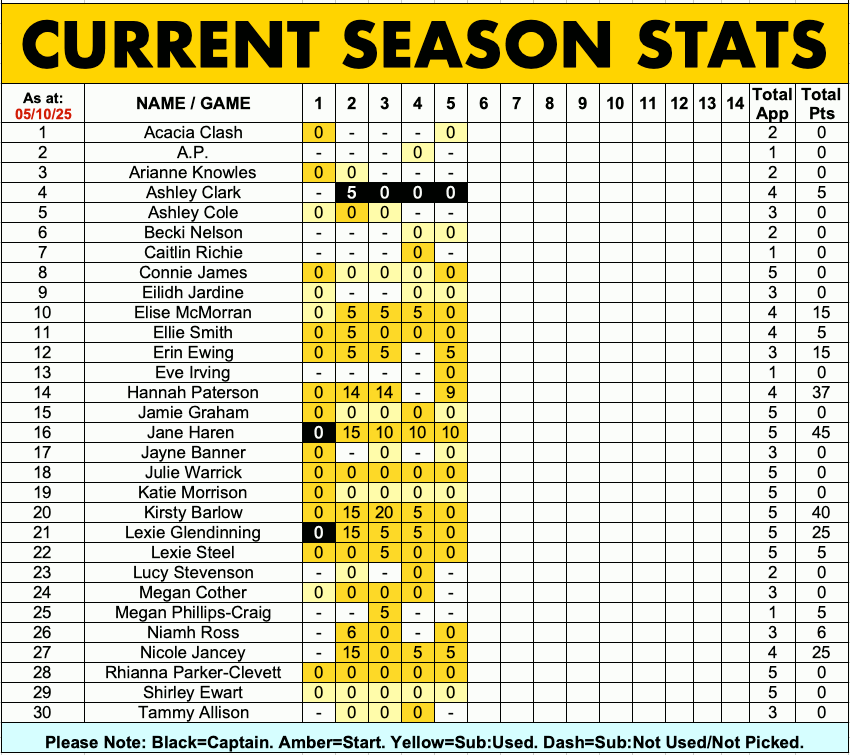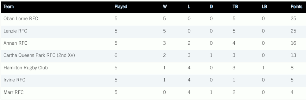 WEST REGION LEAGUE DIVISION 2 TABLE