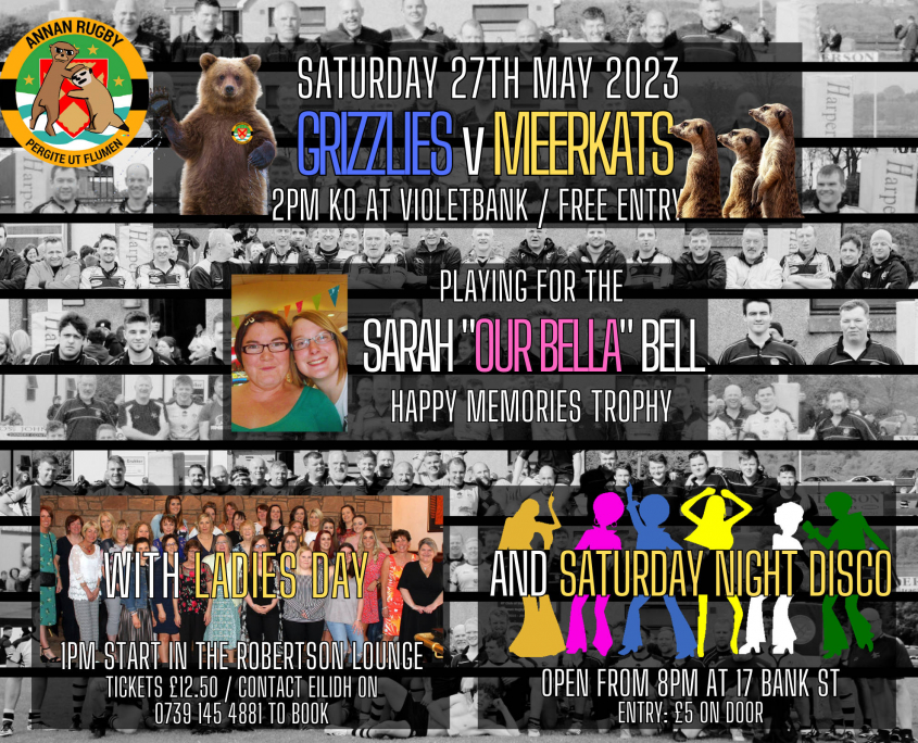 27th May 2023 - The Annan Grizzlies v The Annan Meerkats for the Sarah "Our Bella" Bell Happy Memories Trophy plus Ladies Day and Saturday Night Disco