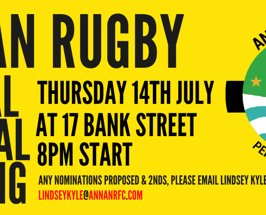2022 AGM - The 2022 Annan Rugby AGM will be held on Thursday 14th July, 8pm start. Now at Violetbank