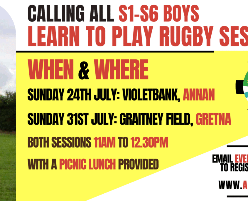 Learn to Play Rugby Session for S1-S6 Boys. Sessions at Annan and Gretna in July