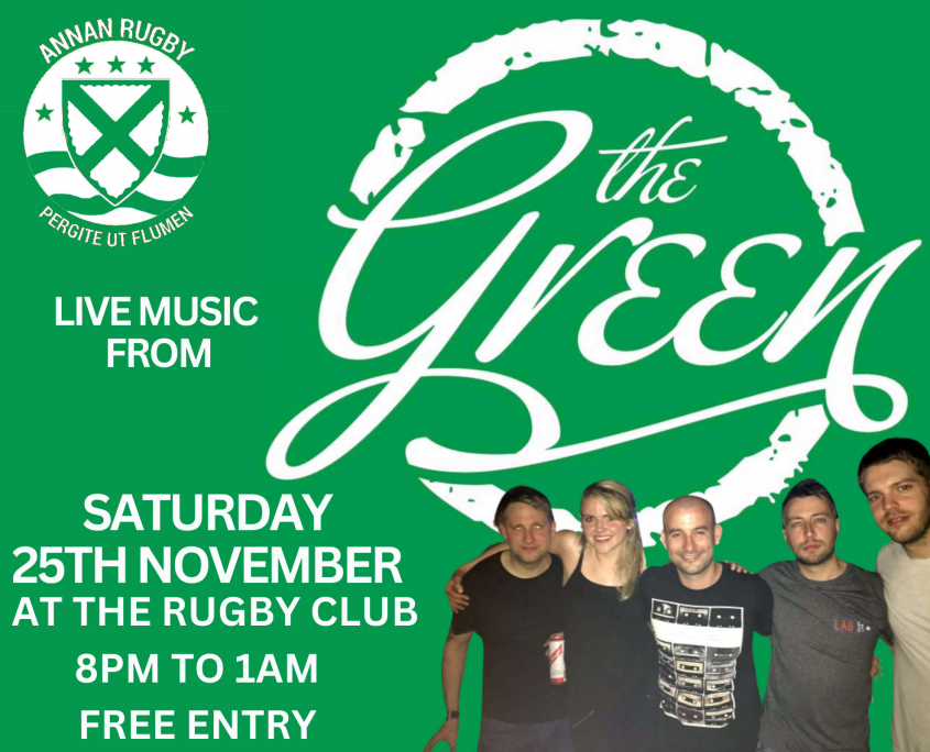 Saturday 25th November - Gretna band, The Green will be providing the music at the Rugby Club.