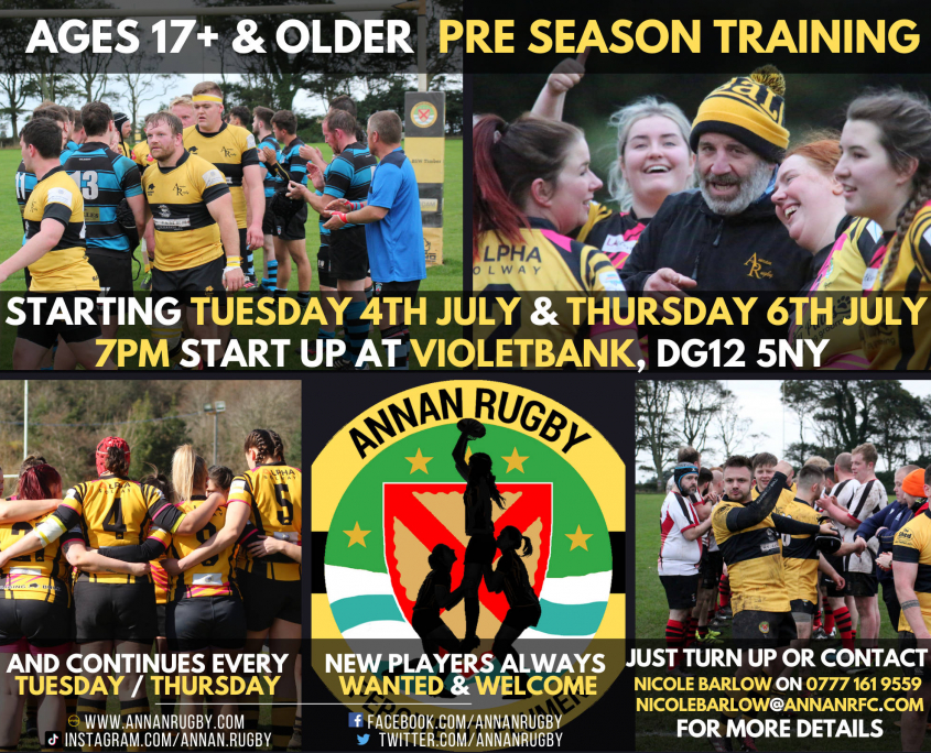 Ages 17+ preseason training starts on Tuesday 4th July. 7pm start up at Violetbank.