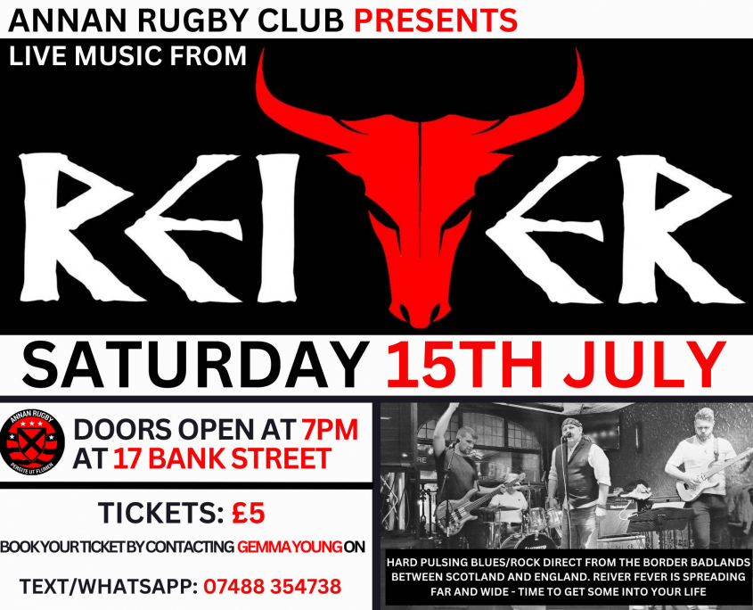 Local band Reiver will be playing at the clubhouse at 17 Bank Street - "Hailing from the Border Badlands, Reiver deliver a mixture of powerful and gutsy classic Blues/Rock"