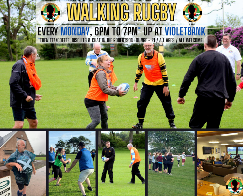 Walking rugby sessions at Violetbank Walking rugby is a slower, non contact version of the game for anyone who are looking to increase their levels of physical activity. All welcome